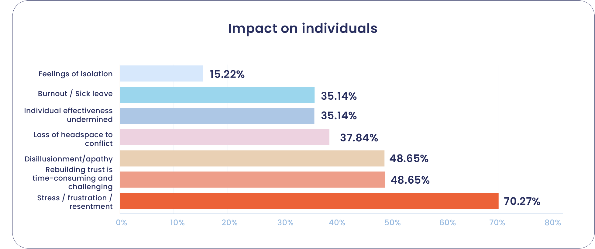 Notes Notes The impact on individualsA significant majority experience damaging levels of stress due to conflicts Read more Mission MirroringCivil society conflicts often mirror the very issues organisations are seeking to address Read more A weakened movementSome 62% of civil society professionals believe their movement is weakened by conflicts Read more The costs of inactionMost interventions happen after the mission has already been weakened. Read more Real change begins with real dialogue Receive exclusive insights, tools and offerings straight to your inbox once a month.